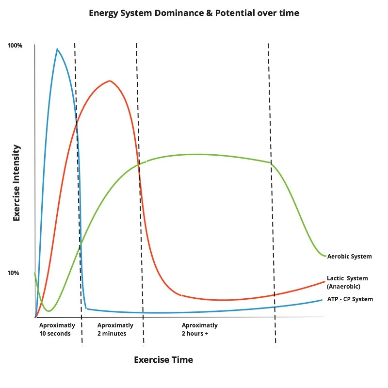 The intensity and duration of the task dictates which energy system predominantly supplies your muscles.